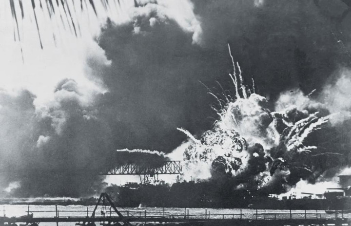 1941年12月7日上午,日本海军袭击珍珠港时,美军驱逐舰“肖”号在被鱼雷击中后发生剧烈爆炸,火焰与弹片直冲云霄