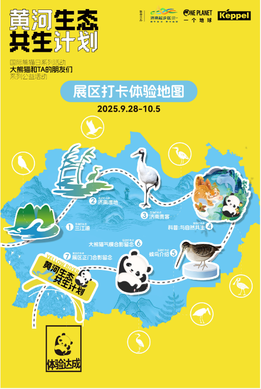 在济南鹊山生态文化区,“黄河生态共生计划暨大熊猫和TA的朋友们”系列公益互动科普活动于9月28日至10月5日举行。活动以“大熊猫”为代表,呼吁社会力量共同守护濒危物种与黄河生态。