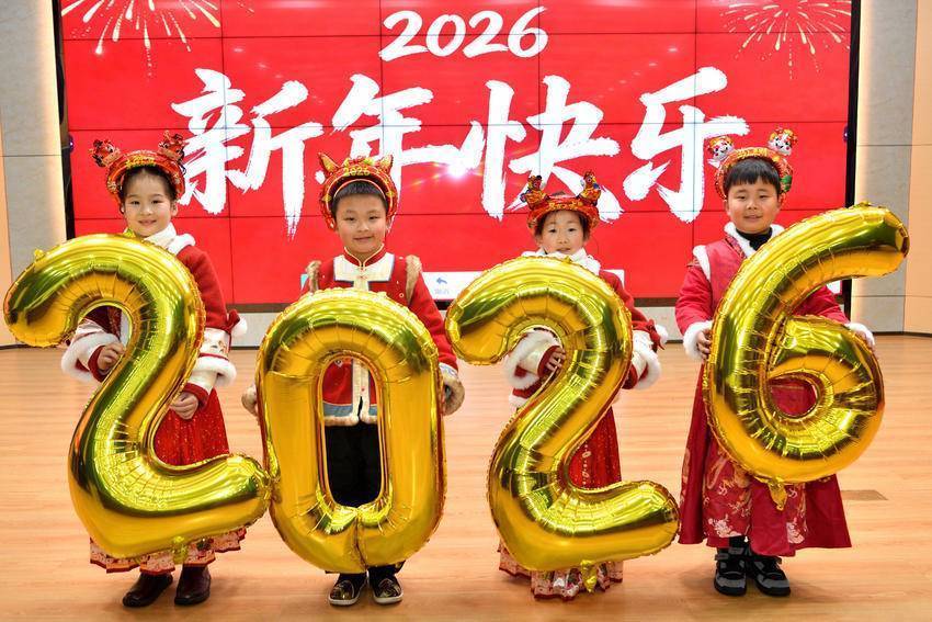 保康县实验小学的迎新氛围同样热烈。学生们整齐列队,有的跳起欢快的新年手势舞,有的手举鲜艳的“福”字和“2026年新年快乐”标语牌,用充满仪式感的方式迎接新年。“新年到 福气到 平安喜乐没烦恼”“迎新年 事事顺 天天开心样样好……”一声声清脆响亮的新年祝福,回荡在校园的每个角落。